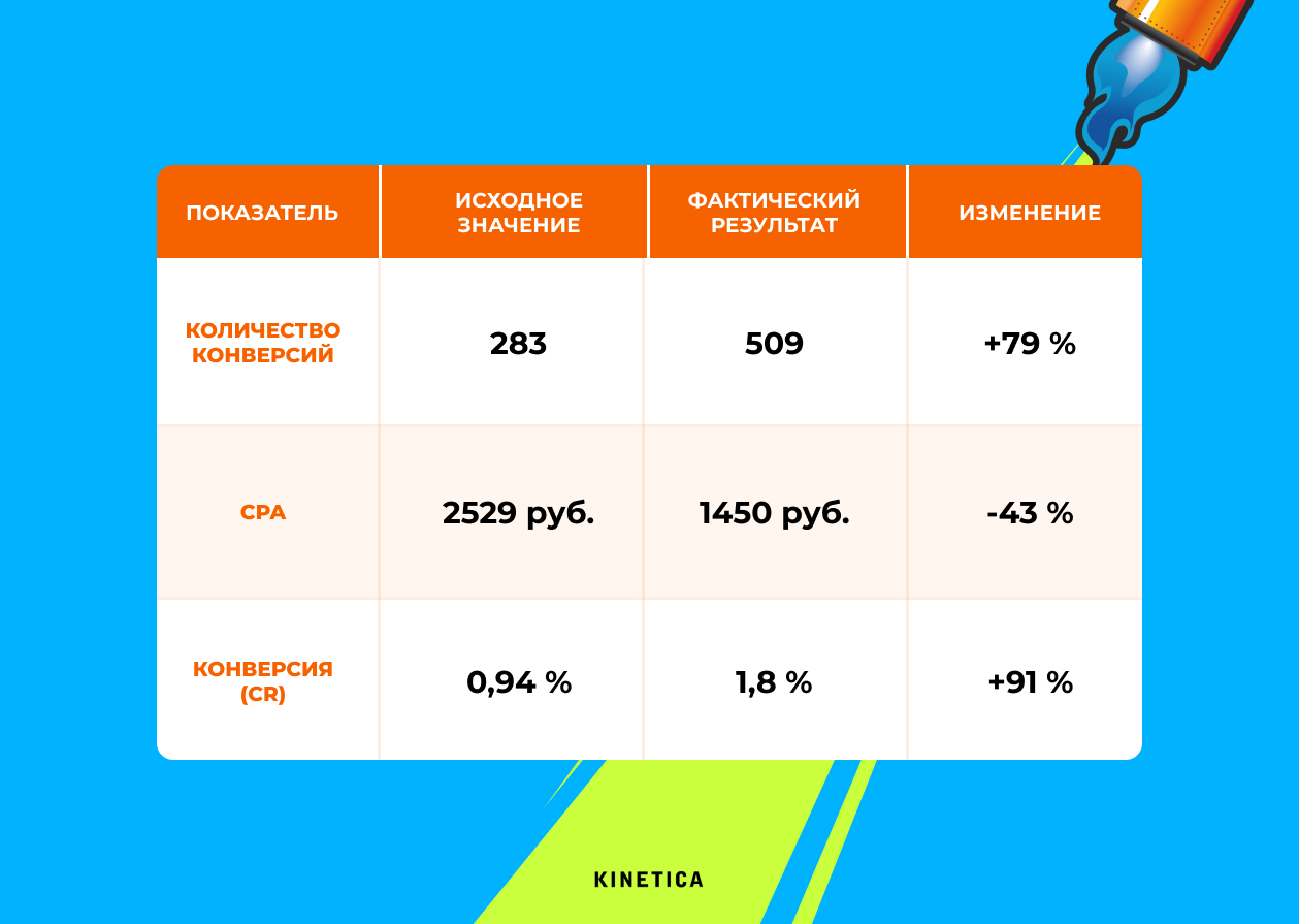 В-третьих, снять часть давления с рекламы и перенести ее на сайт. Когда клик дорожает, самый короткий путь к снижению CPA — не всегда купить трафик дешевле, а повысить конверсию посадочной страницы. Именно здесь работа над UX, оффером, формой, скоростью загрузки и промежуточными сценариями дает самый недооцененный экономический эффект. В одном из наших кейсов пишем как переработка сайта и воронки подняла конверсию с 1,7% до 3,1% и одновременно снизила CPA на 53%.