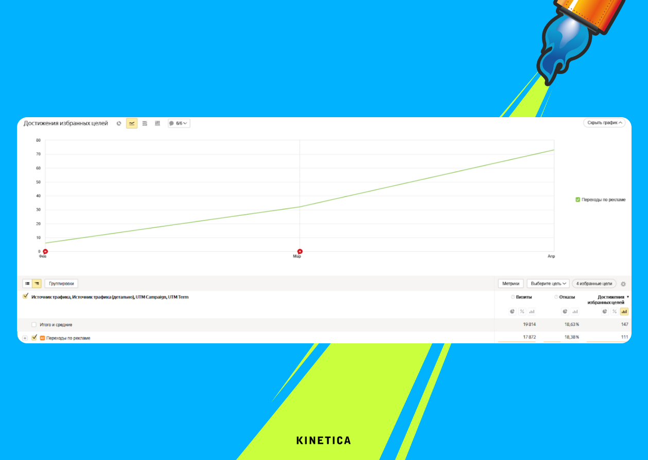 - 111 целевых лидов: мы привели клиенту более сотни потенциальных покупателей катеров стоимостью в десятки миллионов рублей.