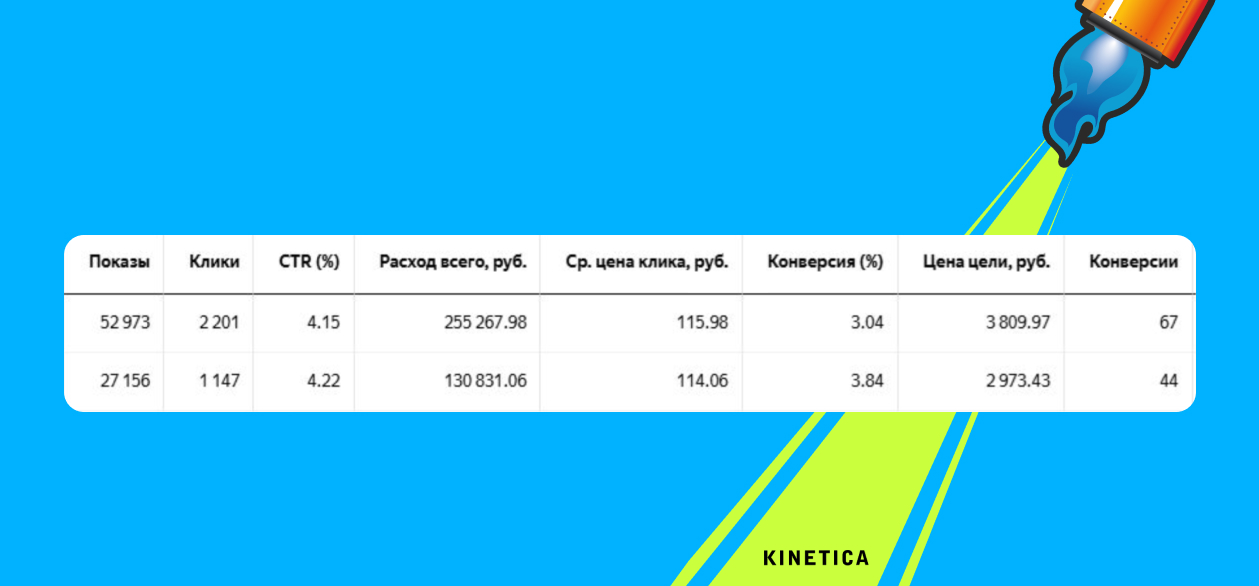 - Запустили тандем: основной бюджет направили на «горячий» Поиск, а «Мастер кампаний» оставили на прогрев аудитории в сетях. И тут нас ждал сюрприз!