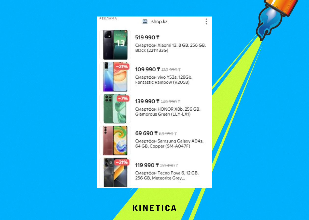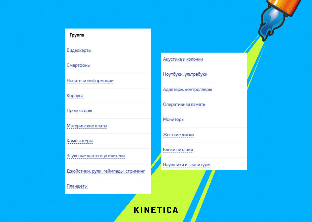 - Кампания «Гаджеты»: комплектующие для ПК, ноутбуки, смартфоны, смарт-часы (покупатели — техно-гики).