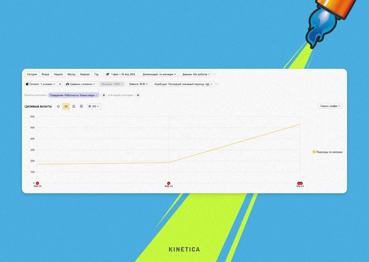 - Внедрение промежуточных целей для оптимизации кампаний не на прямую заявку, а на «глубокое взаимодействие с контентом» (просмотр не менее 3 страниц + время на сайте более 2 минут);